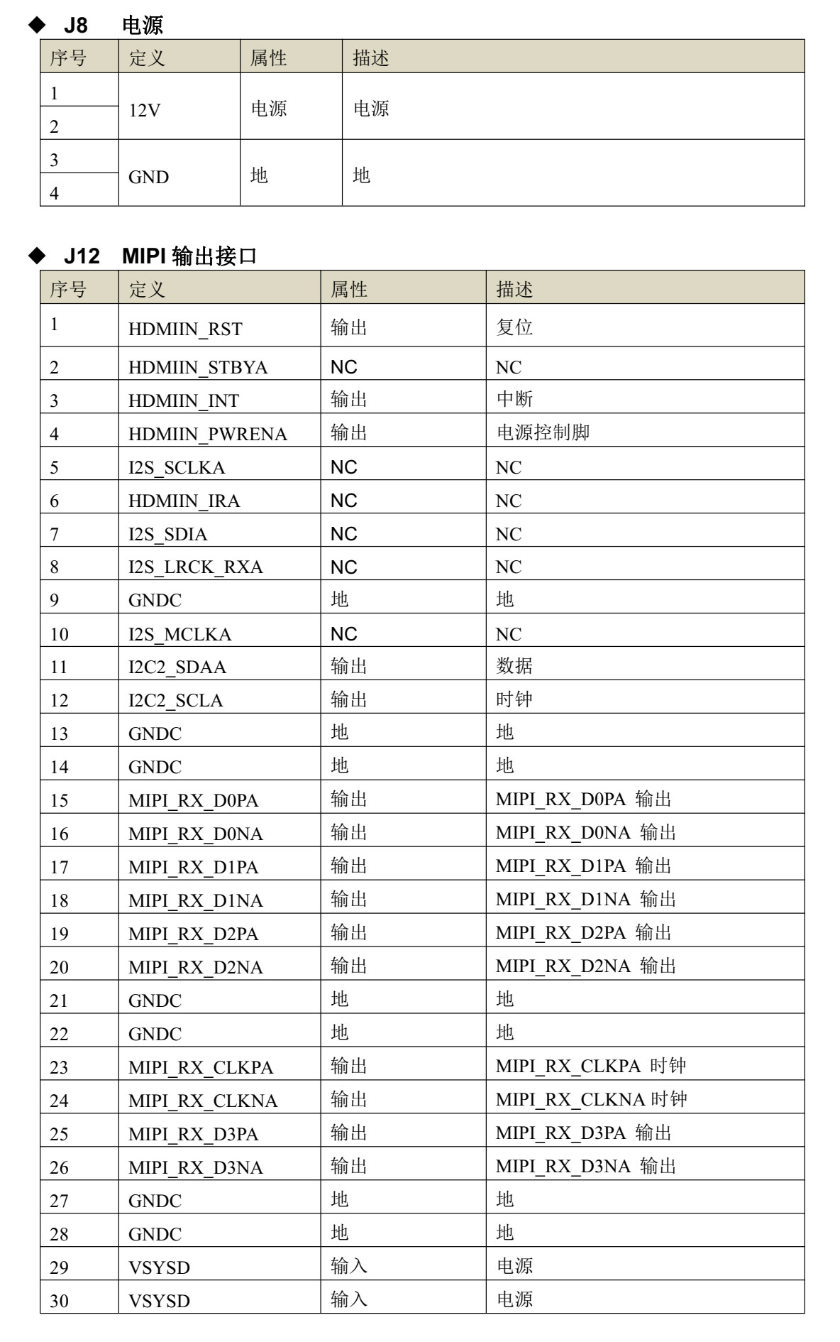 板卡接口定義