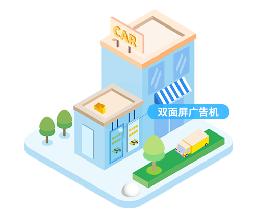 放置于櫥窗區域,一塊主板驅動兩塊屏幕,支持雙屏異顯、雙屏同顯,對外屏幕多圖層動態海報吸引顧客注意、勾起消費欲望;對內屏幕補充展示車輛或活動信息。